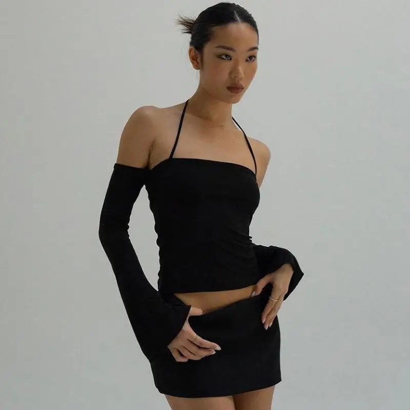Lunivop Y2k Vintage Crop Top Long Sleeve T Shirts Women Off-the-shoulder Neckline Halter Korean Fashion Aesthetic Autumn And Spring
